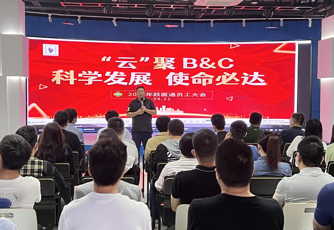 2022年5月21日是個特殊的日子,在這個“吾愛伊”的日子里,全體躍醫(yī)通人齊聚一堂,以“利他”和“愛”為基礎(chǔ),開展了一場特別的全體員工大會。北京愛康醫(yī)療集團董事長-王東博士、常務(wù)副總裁-陸志勇先生、常務(wù)副總裁-楊治國先生、集團CHO-胡銀龍先生、愛康大學(xué)執(zhí)行副校長-郭威先生、躍醫(yī)通CEO宋傳旭先生等集團和公司重要領(lǐng)導(dǎo)出席本次會議,分別就本次會議做出重要講話。因疫情防控原因堅守在醫(yī)院前線的同事,一同在線上參加本次會議。會上大家一起分享了收獲的喜悅,并進(jìn)行熱烈討論,不斷貢獻(xiàn)個人智慧。