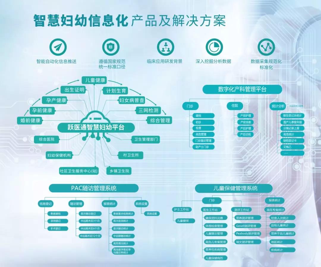 化的建設(shè)要求,助力醫(yī)院進(jìn)行智能化管理。躍醫(yī)通科技致力于提供最專業(yè)的婦幼信息化整體解決方案,不斷提升人們的就醫(yī)體驗(yàn)和婦幼